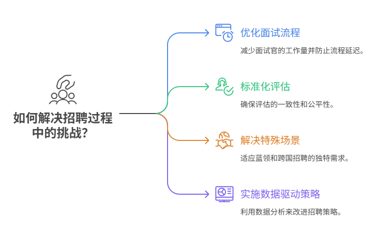 成本控制难:线下笔试场地、面试官差旅等成本高,规模化招聘压力显著。