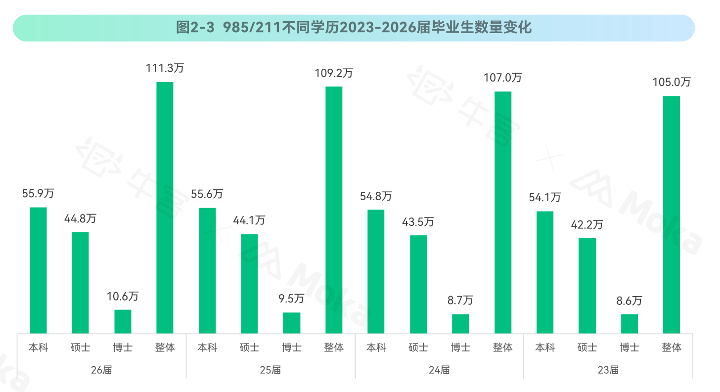 2026届985/211毕业生中,硕士占比40.3%,博士占比9.5%,高学历供给加速。企业需精准锁定"本科为基、硕博扩张"的人才梯队。