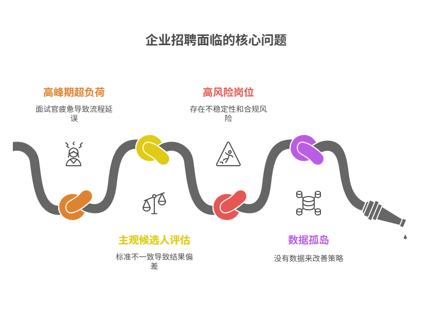 解决:AI面试工具通过标准化题库与追问机制,提升评估一致性,入职匹配度增加52.2%。